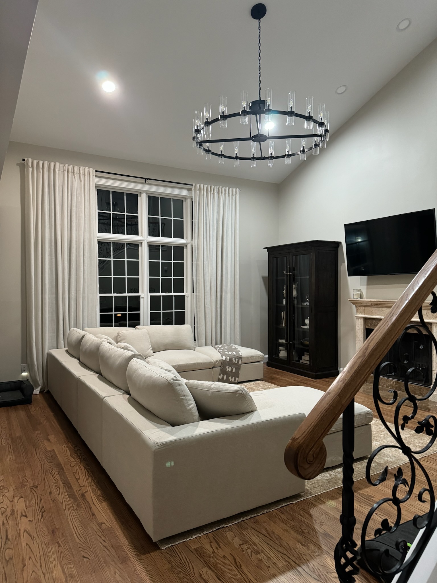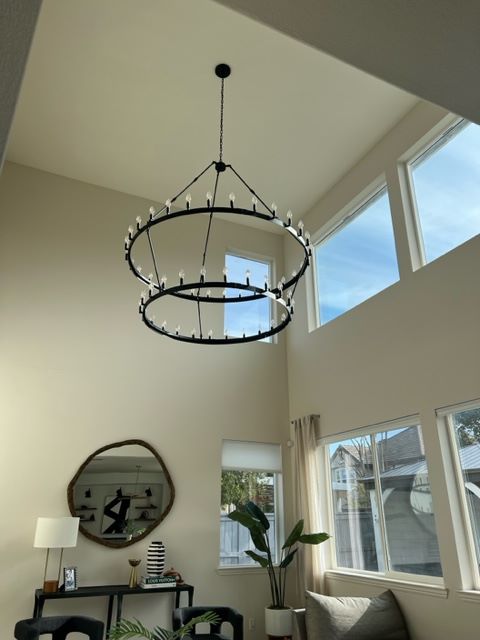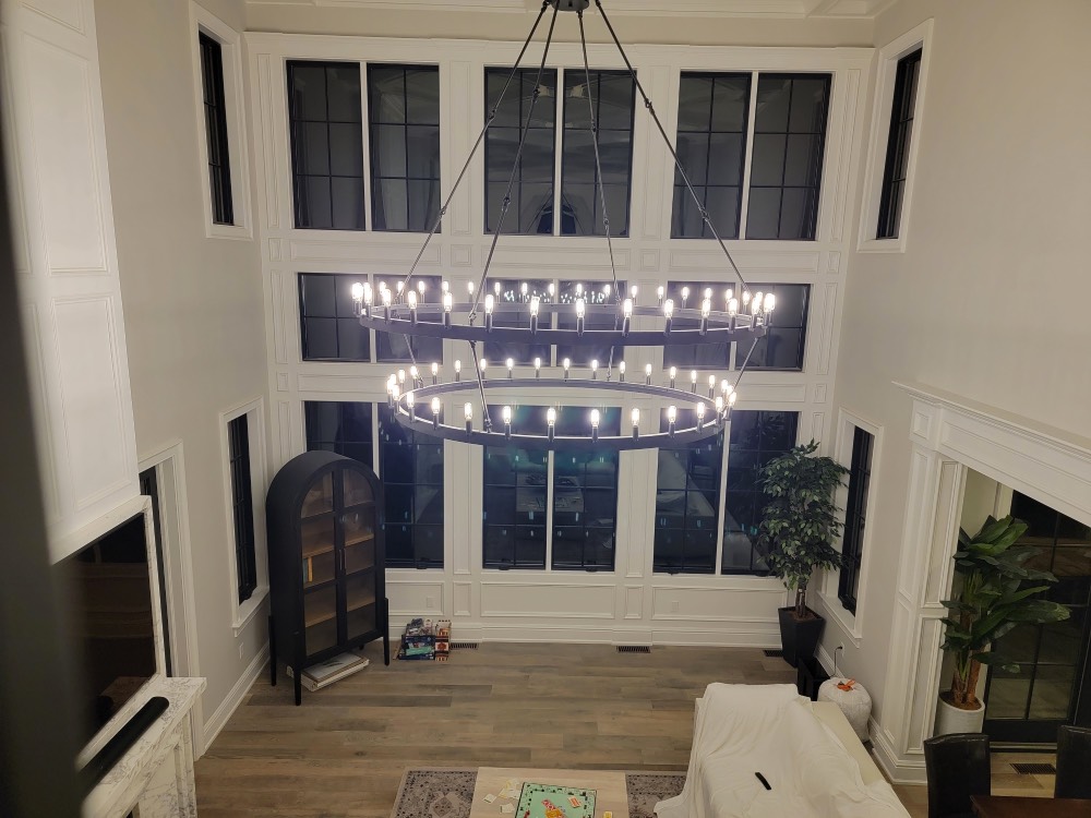 Beautiful chandelier! It completely transformed our room and adds the perfect glow.