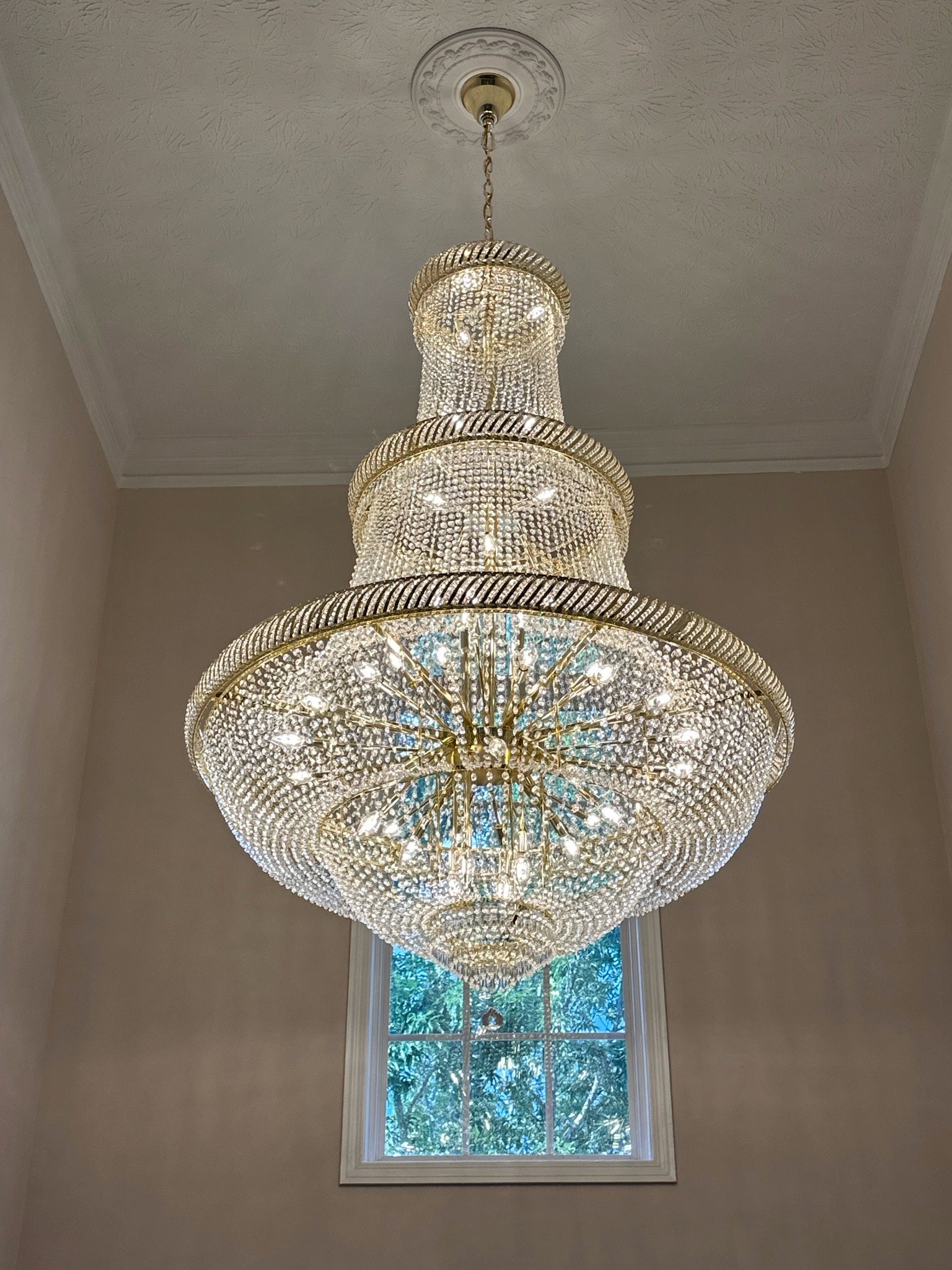 Gorgeous chandelier with a very high-end look. We get compliments from everyone who visits.