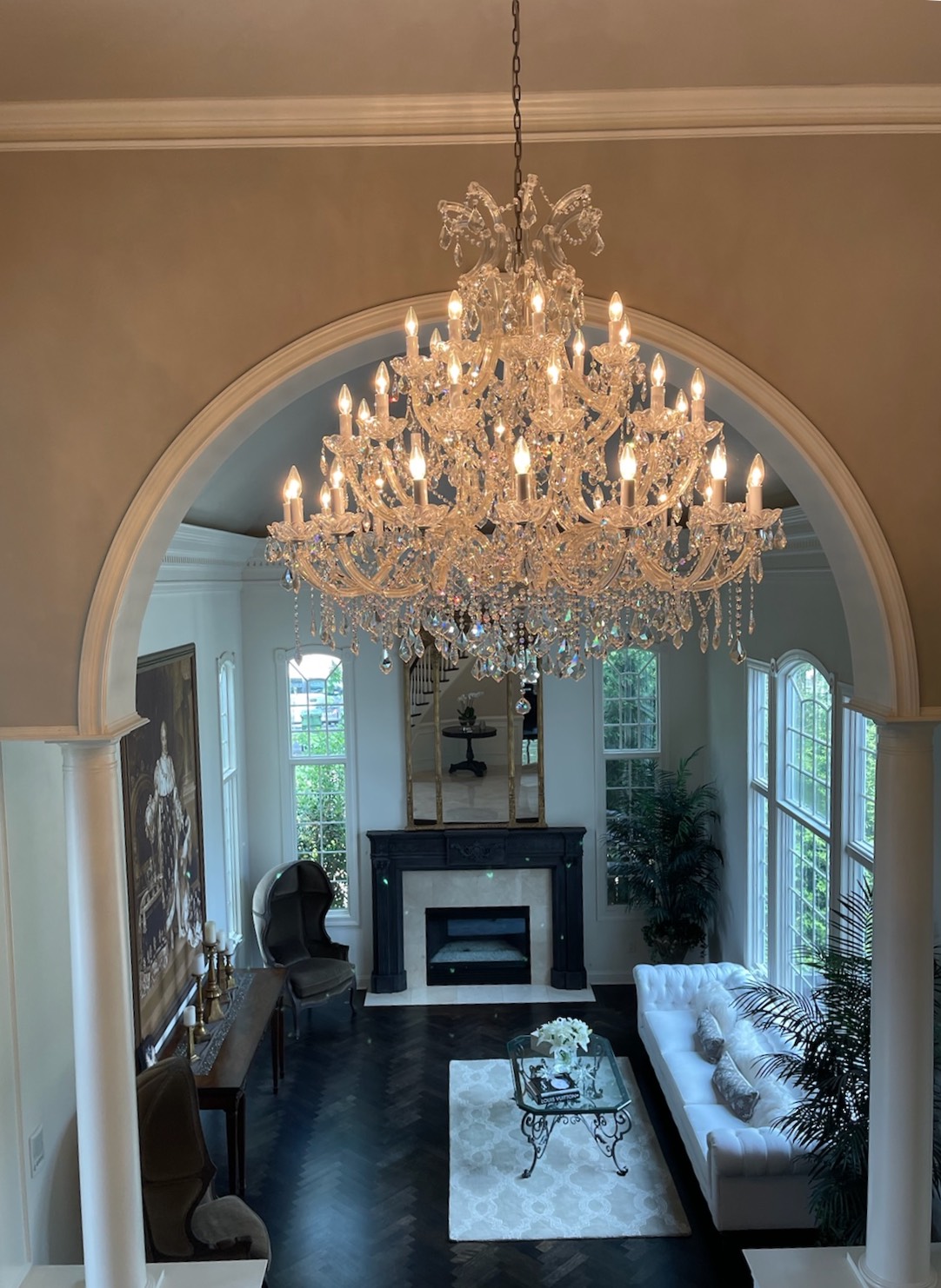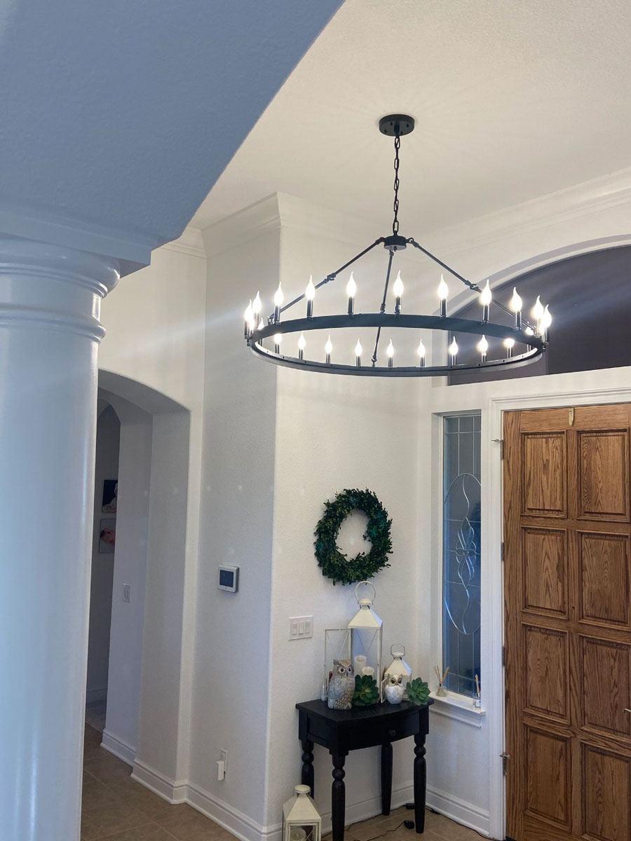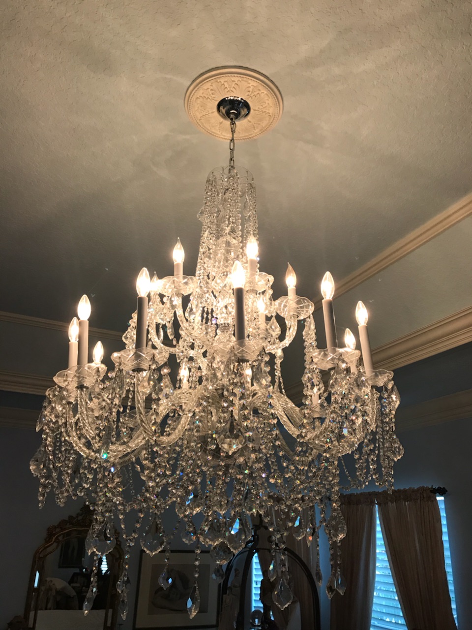 Beautiful chandelier! It completely transformed our room and adds the perfect glow.