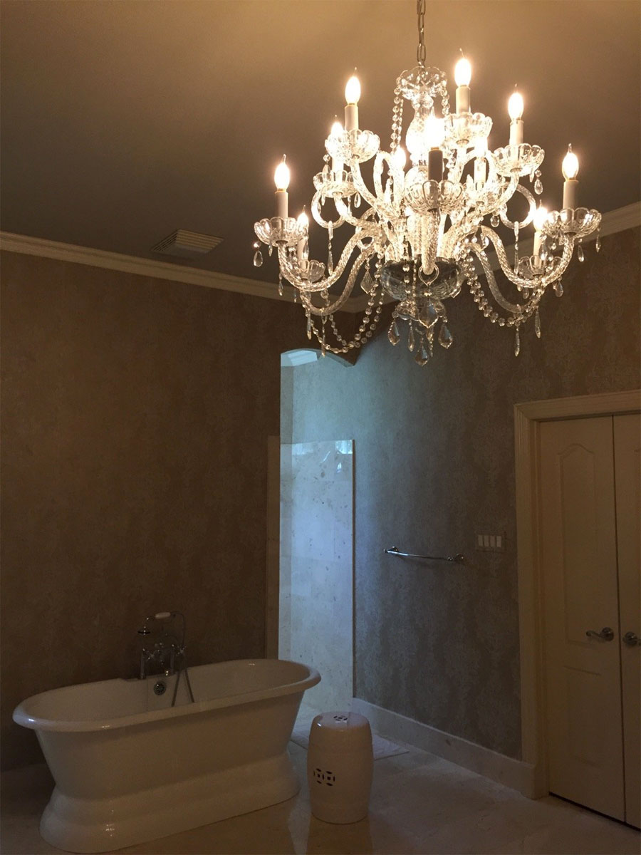 Beautiful chandelier! It completely transformed our room and adds the perfect glow.