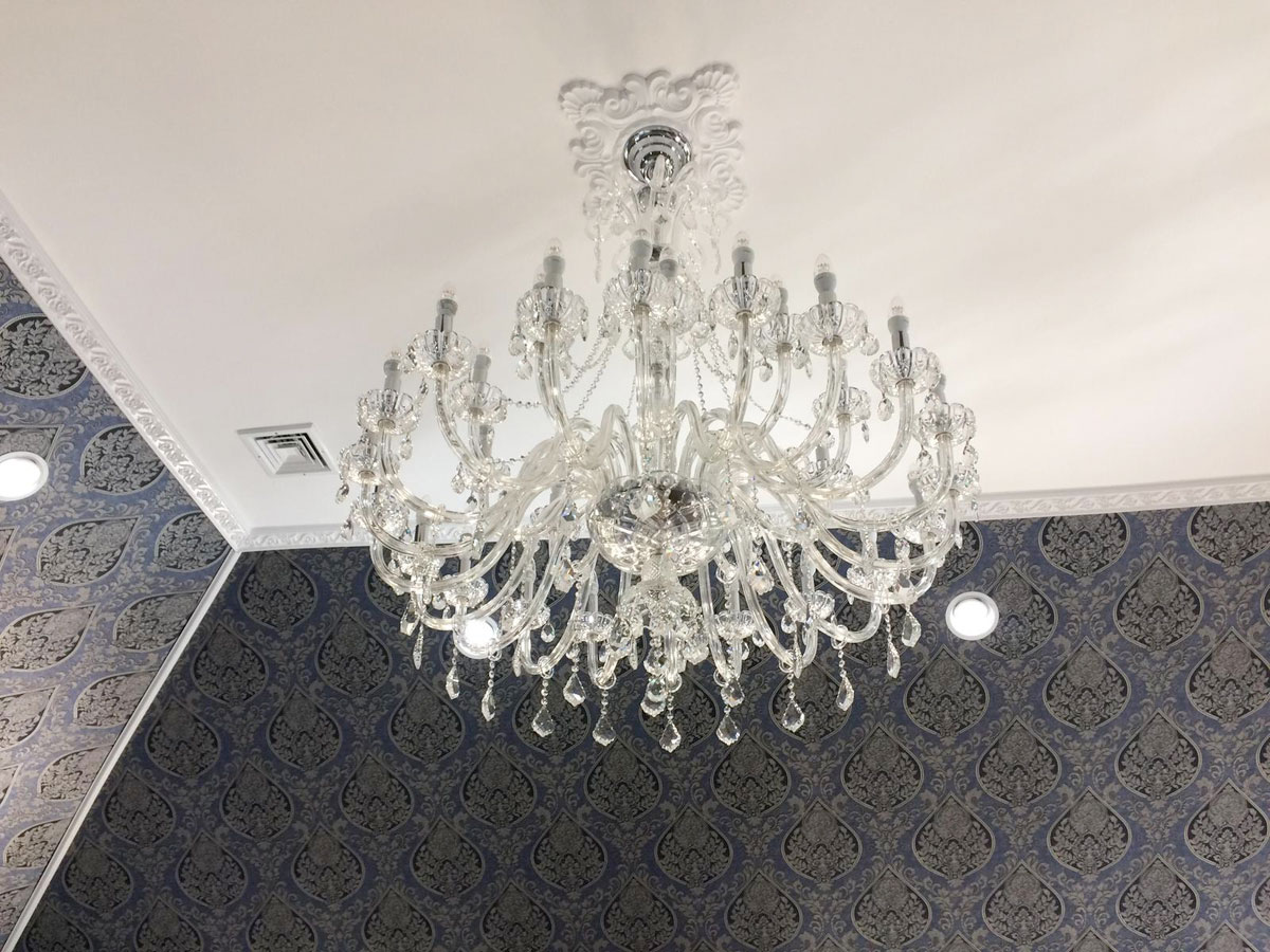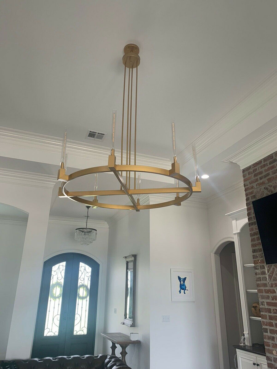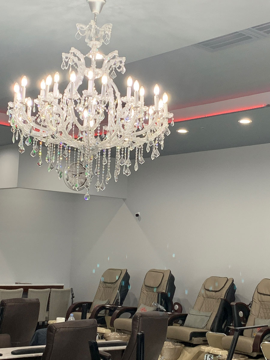 Beautiful chandelier! It completely transformed our room and adds the perfect glow.