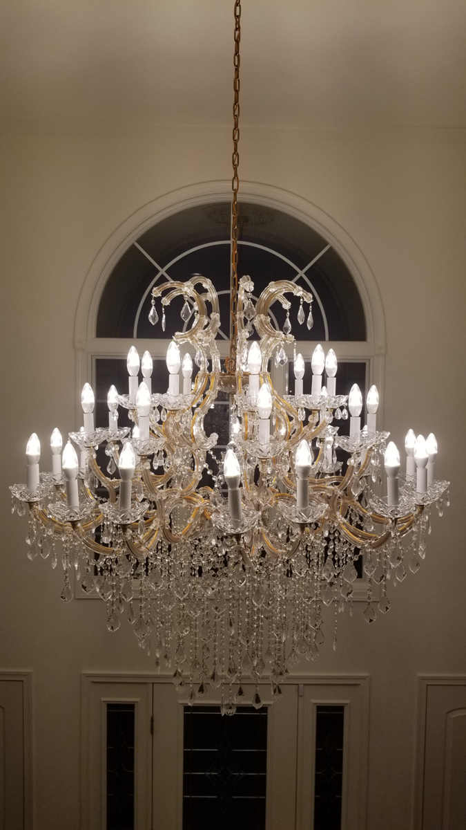 Beautiful chandelier! It completely transformed our room and adds the perfect glow.
