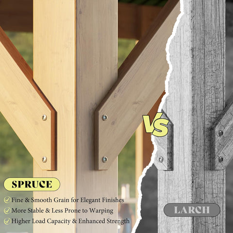 - Robust Stability: Built with spruce beams and pillars, this spruce wood gazebo offers exceptional strength. All wood is fumigation-certified, and the pillars are securely fastened to cement flooring with expansion screws for enhanced stability.