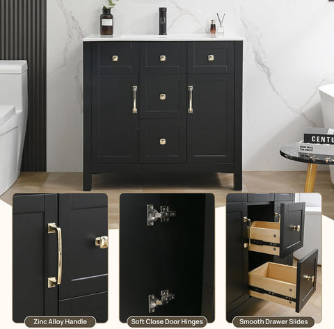 - Hassle-Free Assembly – Ships in two packages and includes the vanity, ceramic sink, faucet, and pop-up drain. Clear instructions make installation quick and easy.