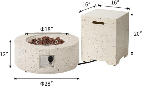 2-Piece Outdoor Propane Fire Pit Table Set w Tank Table, 28" Terrazzo Round Fire Table (Certified, 40,000 BTU) w 16" Tank Cover Side Table 20lb