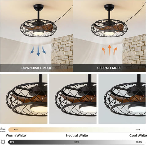 - LED LIGHTING AT NIGHT: Ceiling fan light has a built-in 15W bright LED light panel, so there are various of lighting options, you can set the brightness output and switch the 3 lighting tone as you like.