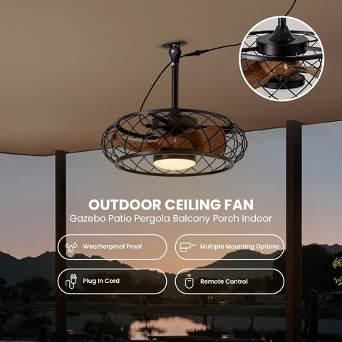 20'' Outdoor Ceiling Fans with Lights, Gazebo Fan Wet Rated Remote&APP Control, Plug in Ceiling Fan for Patios
