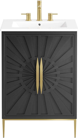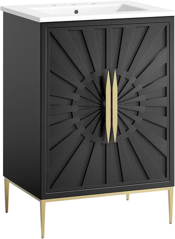 24-Inch Modern Bathroom Vanity Cabinet, White and Black Finish