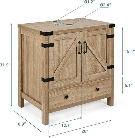 28 inch Natural Color Bathroom Vanity, Rustic Fixture Standing Pedestal Cabinet with Gold Boat Vessel Sink