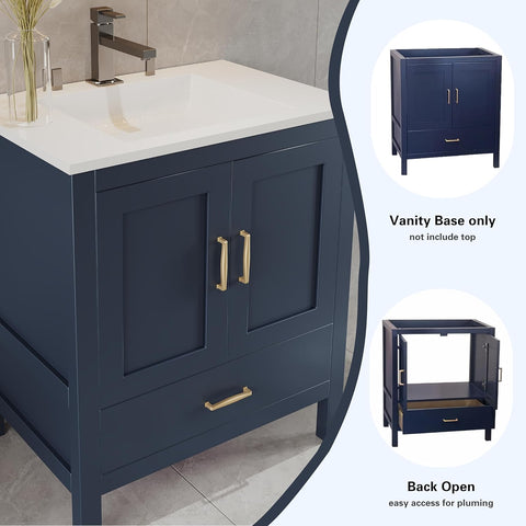30 Inch Blue Freestanding Bathroom Vanity Sink Base Cabinet Without Top with Bottom Drawer / Handler -- 30-inch-blue-freestanding-bathroom-vanity-sink-base-cabinet-bottom-drawer