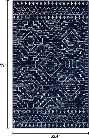 3x5 Washable Moroccan Area Rug, Low Pile Non-Slip Carpet for Entryway Kitchen Blue