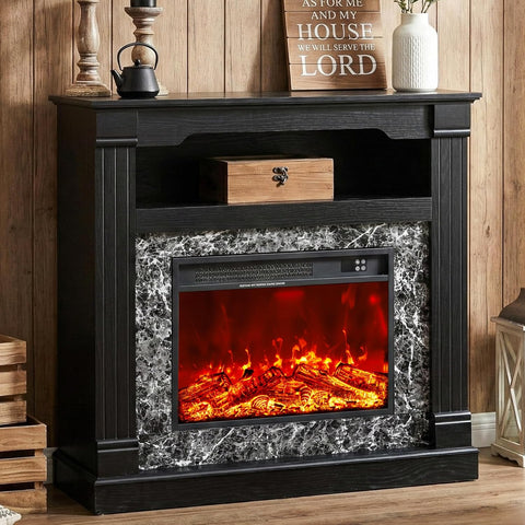 40 Inch Electric Fireplace with Mantel, 23 Inch Freestanding Fireplace Heater, 4800 BTU Heating, LED Flame, Overheat Protection and Remote Control, Black Wood Grain