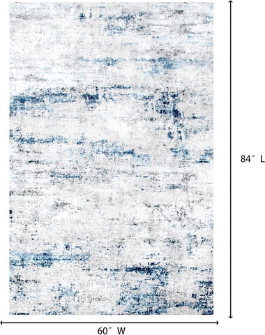 5x7 Modern Abstract Area Rug, Soft Non-Slip Indoor Carpet for Living Room Bedroom White Grey Blue