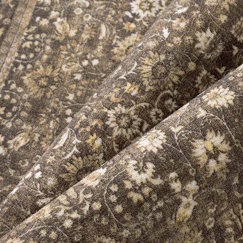 8x10 Washable Floral Area Rug, Low Pile Soft Carpet for Living Room Bedroom Brown