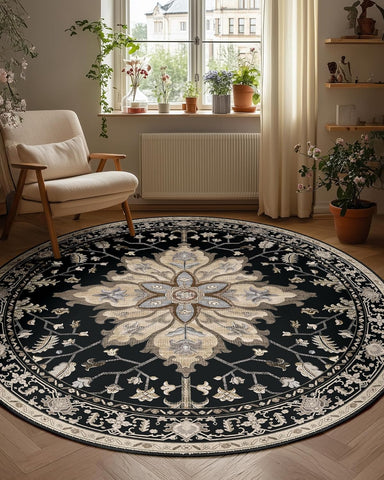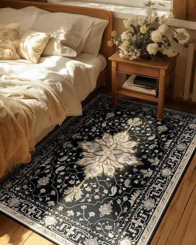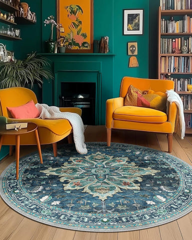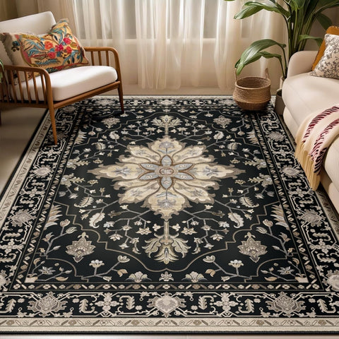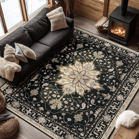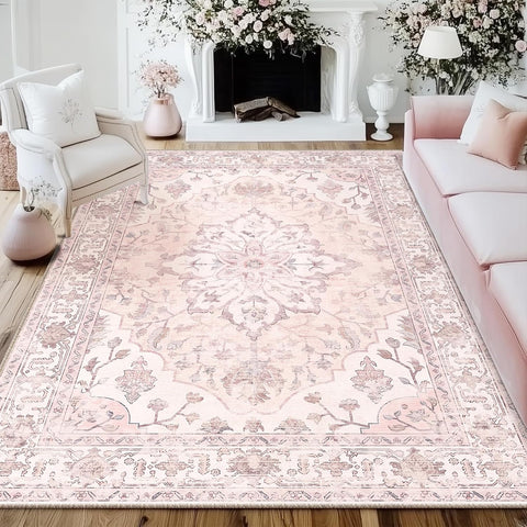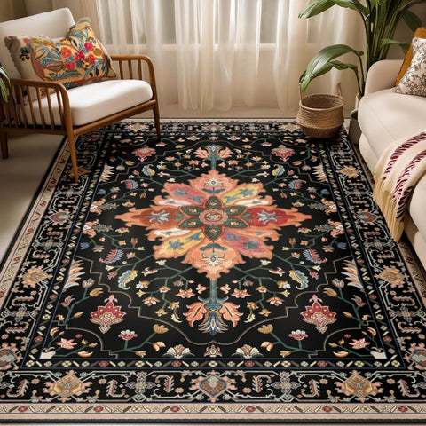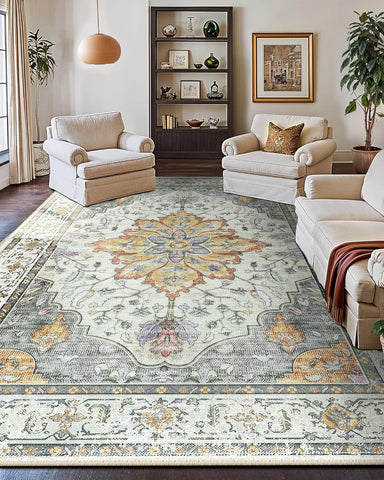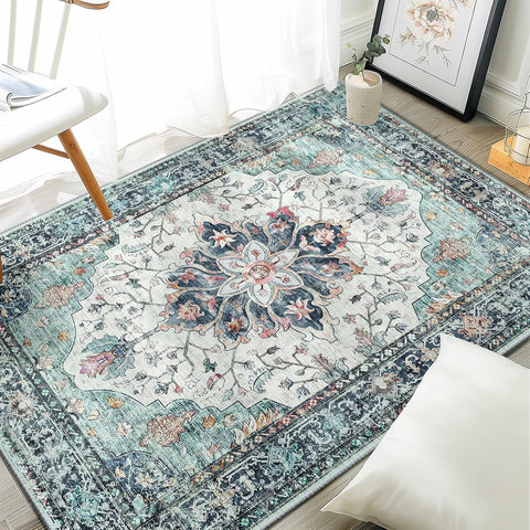 Area Rugs Washable Non-Slip, Floral Vintage Distress Print Pattern Medallion Carpet for Living Room Bedroom