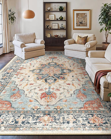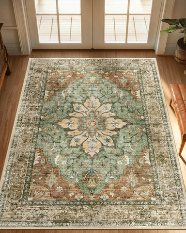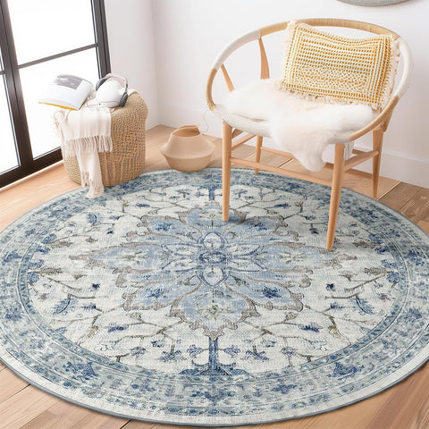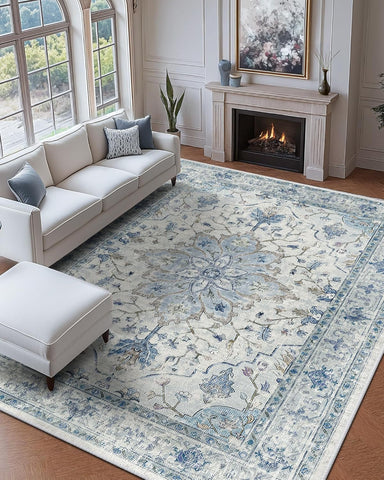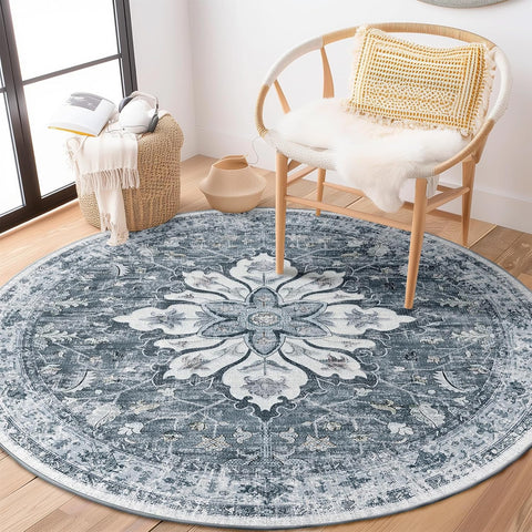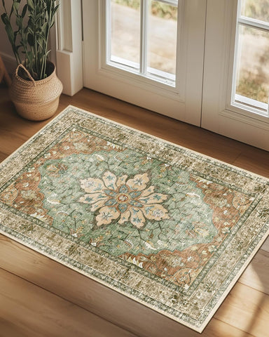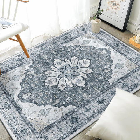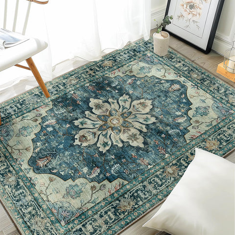 Area Rugs Washable Non-Slip, Floral Vintage Distress Print Pattern Medallion Carpet for Living Room Bedroom Dining Room