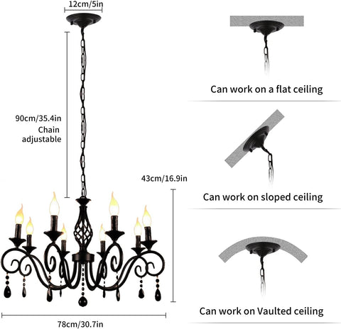 The Black K9 Crystal Rain Drop 8 Lights Chandelier Lighting is a gorgeous ceiling light fixture which is far more stunning than the picture. Solidly built with good quality materials Crystal raindrop & french country style, the industrial vintage chandelier.