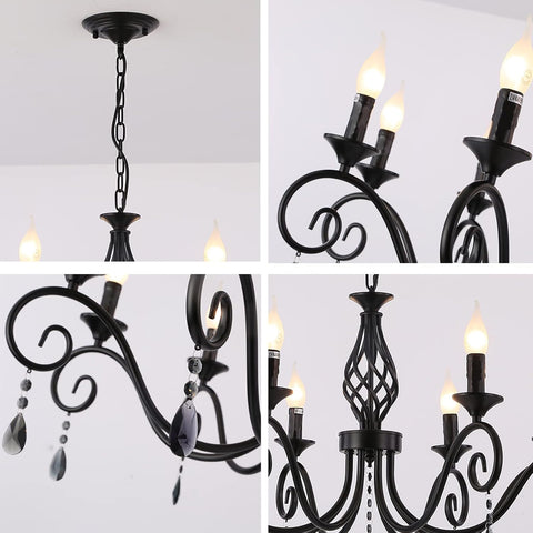 Chandeliers,8-Light French Country Crystal Candle Chandelier,Industrial Black Vintage Pendant Light Fixture Hanging Lights for Living Room Kitchen Dinner Room Island Kitchen A109-B07ZFJM84Z