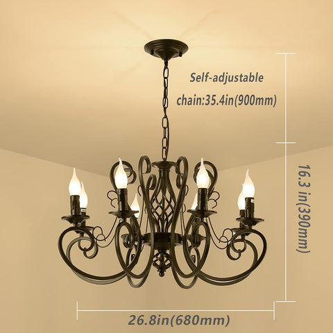 French Country Chandeliers,8 Lights Kitchen Island Candle Iron Black Chandelier,Industrial Vintage Pendant Light Fixture for Farmhouse,Dining Room,Bedroom,Foyer A109-B07VLKXLNS