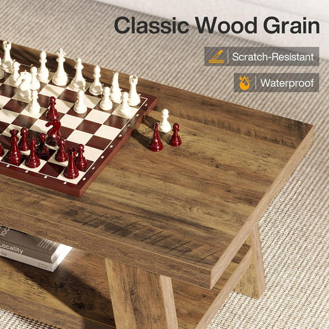 - Heavy-Duty Build: Reinforced A-frame legs (5.7" wide) with a sturdy 1.2" thick base provide superior support. The wood coffee tabletop holds up to 220 lb, while the lower shelf supports 44 lb, ensuring long-lasting stability without wobbling