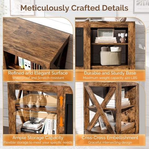 Elevate your space with this fireplace tv stand for up to 80 inch tvs, farmhouse entertainment center with electric fireplace heater & adjustable shelves, fireplace media console table for living room, rustic brown. Designed with both style and functionality in mind, this piece makes a perfect addition to any home.