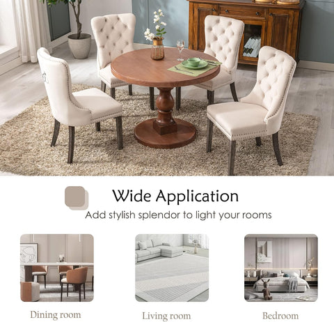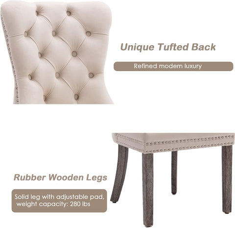 KCC Velvet Dining Chairs Set of 4, Upholstered High-end Tufted Dining Room Chair with Nailhead Back Ring Pull Trim