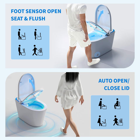 Elevate your space with this smart toilet with powerful flush, auto open/close lid. Designed with both style and functionality in mind, this piece makes a perfect addition to any home.